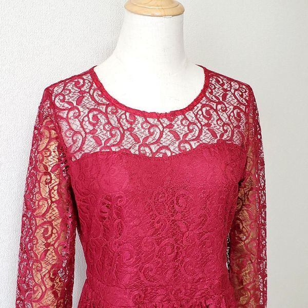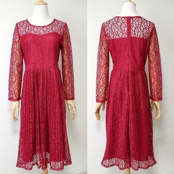 総レ-ス膝丈ワンピ-スです。優良素材使用で長時間着用されても綺麗に着こなせます。全体の総レ-スがとても豪華又スリムに見えるデザインで大人の女性を醸し出してくれる一着です。裏地あり。背中ファスナ-有。