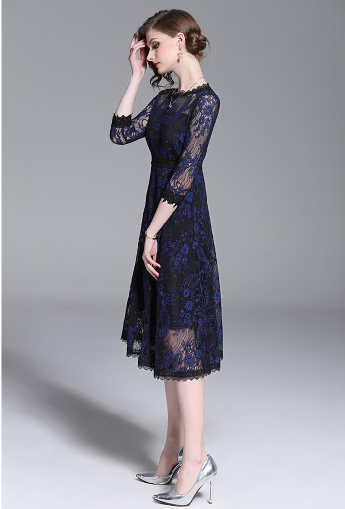 総レ-スマキシ丈ワンピ-スです。優良素材使用で長時間着用されても綺麗に着こなせます。全体の総レ-スがとても豪華又スリムに見えるデザインで大人の女性を醸し出してくれる一着です。裏地あり。背中ファスナ-有。