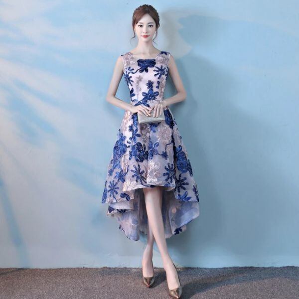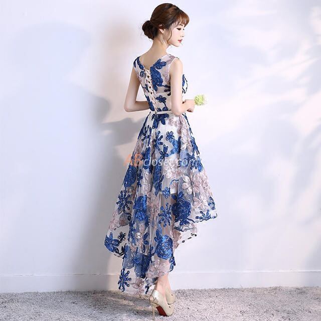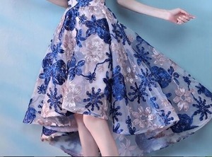 フィッシュテ-ルパ-ティ-ドレです。前と後ろの丈が異なるフィッシュテ-ルでスカート部分はサテン地にチュ-ルが重ねられたデザインです。パーティやイベント、結婚式など、様々なシーンで、気品のある印象を与えてくれる一枚です。裏地有。背中網掛け。背中腰より下ファスナ-有。胸パット付き。