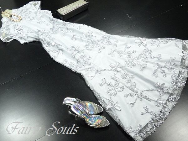 チャイナ風立体刺繍マーメイドドレスです。サテン地に立体刺繍が施されたチュ-ルが重ねられたチャイナ風マーメイドのデザインで透け感がとても美しく大人の女性を醸し出してくれるエレガントなドレスです。デザイン性のあるスタイルがとても魅力的な一着です。全体的に優しい感じに仕上げられています。背中ファスナ-有。