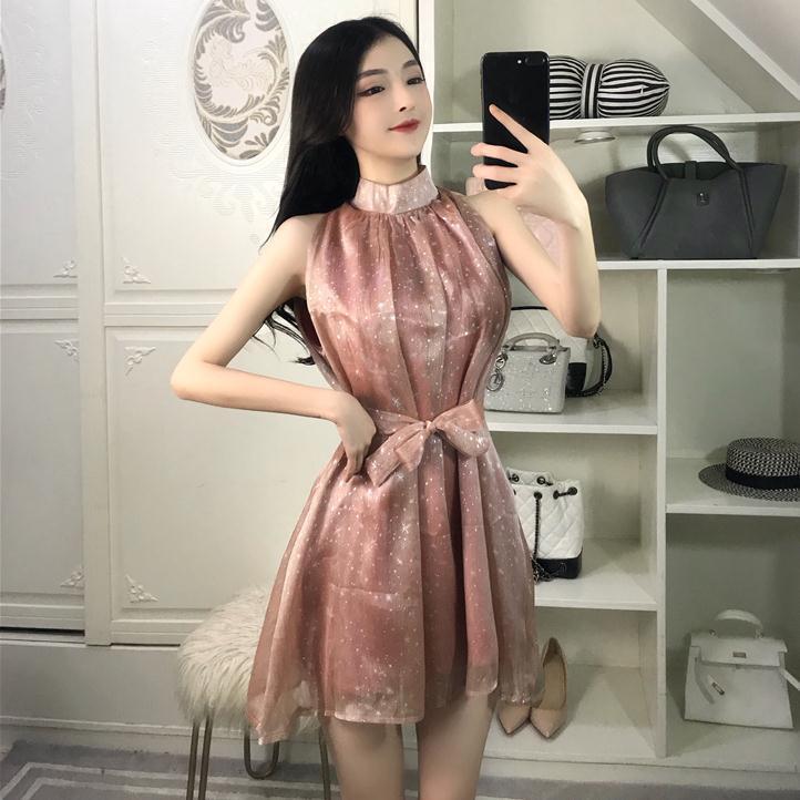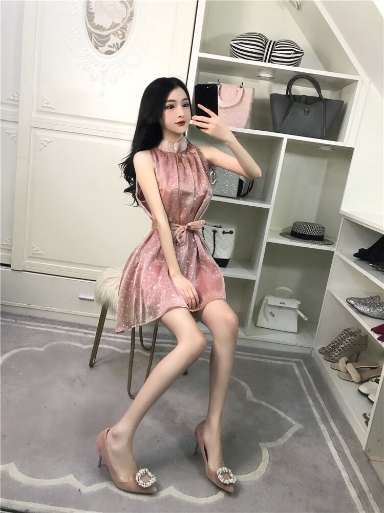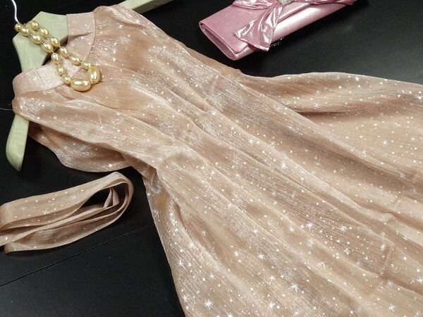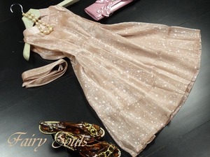 星がきらめくピンクのワンピ-ス。さらっとした光沢のある生地にホワイトの星をいっぱいにプリント。立て襟の下は細かなタックをとって、襟元から袖ぐりにかけてのラインが魅力的なデザインに。共布のウエストリボンは取り外し可能で、リボン有り無しで違った印象に。ほんのり透け感があるので気になる方はインナー着用をお勧めします。ファスナーなしのかぶるタイプ。裏地付き。