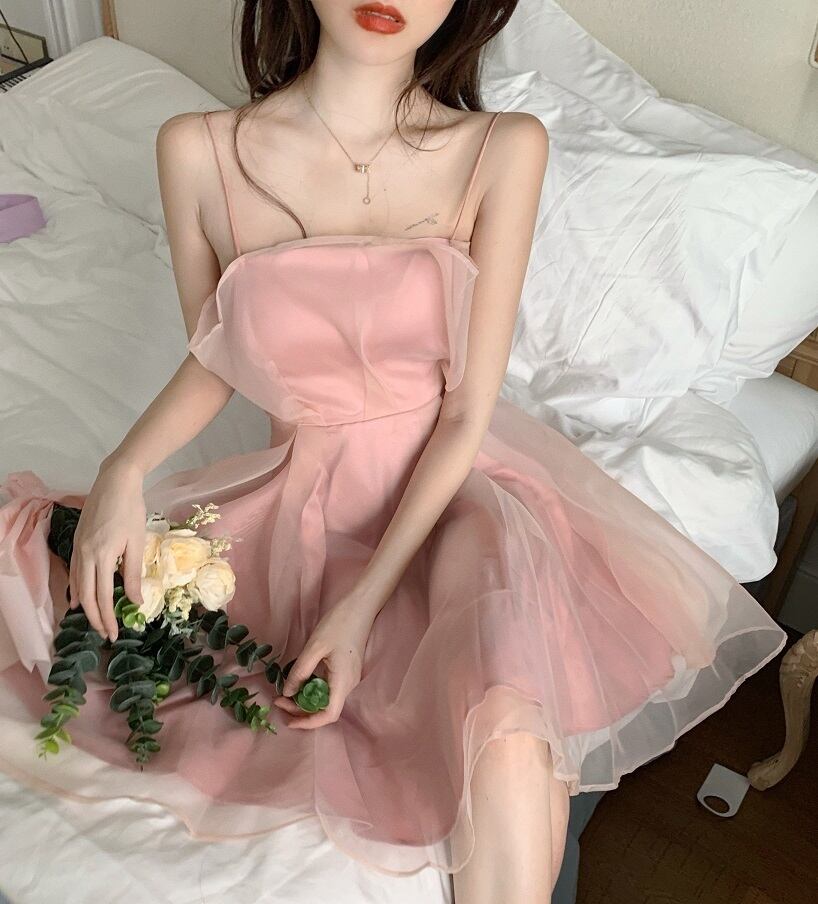背中見せセクシー可愛いドレスワンピ。ピンクの透け感のあるサテン地をウエストで切替、背中を大きく見せることでセクシーさを、胸元で上地のシフォンがふんわり下地のサテン地をカバーしキュートな印象を醸し出しています。パーティでは華やかさ抜群の一着です。背中ファスナ-有。裏地なし(上地と下地に分かれています)。サイズM表示ですが、実質7号サイズ位。