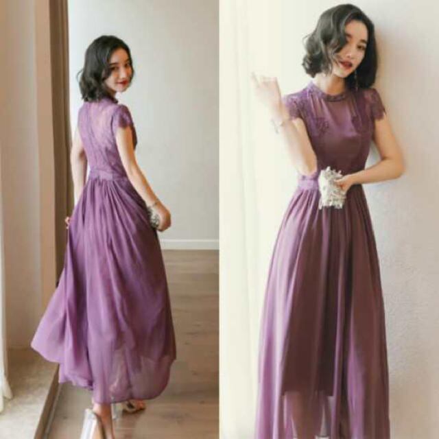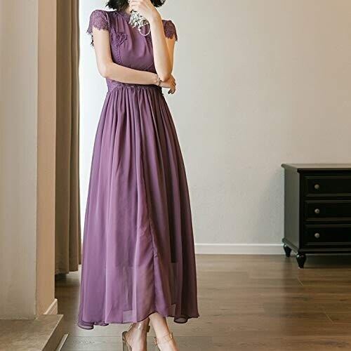シフォンシースル-ロングワンピ-スです。トップス部分の刺繍がとてもエレガントで大人の女性を十分に演出してくれる一着です。ウエストから裾にかけてはたっぷりとシフォン生地が使われフレア-の柔らかい動きが女性らしさをUPしてくれています。裏地有。背中ファスナ-有。