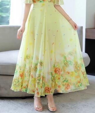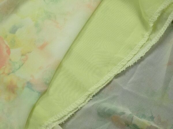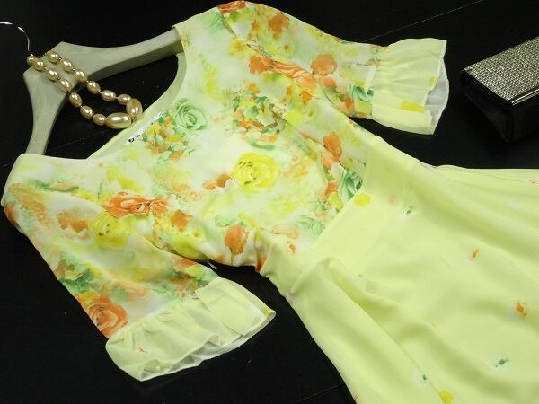 天使のようなとても見栄えのする豪華な花柄シフォンロングワンピ-スです。スカ-ト部分はたっぷりと生地を使い大変ボリュ-ム感のある女性らしい素晴らしいドレスです。軽やかでしなやかな生地で裾が歩くたびにひらひらと揺れ、足元を美しく見せてくれます。裏地有。右サイドファスナ-有。