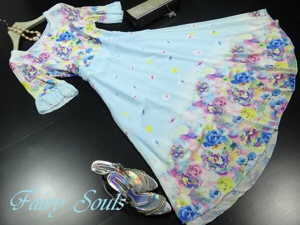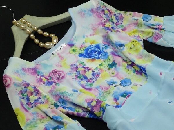 天使のようなとても見栄えのする豪華な花柄シフォンロングワンピ-スです。スカ-ト部分はたっぷりと生地を使い大変ボリュ-ム感のある女性らしい素晴らしいドレスです。軽やかでしなやかな生地で裾が歩くたびにひらひらと揺れ、足元を美しく見せてくれます。裏地有。右サイドファスナ-有。