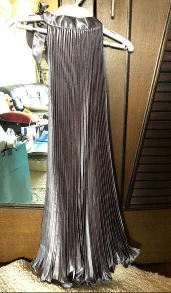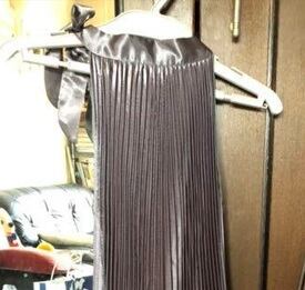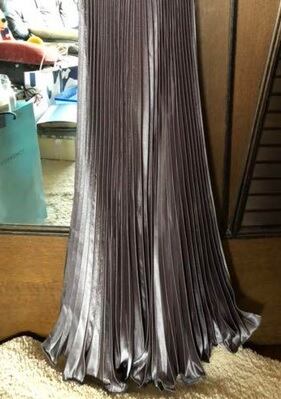 光沢メタリックアコ-ディオンプリ-ツワンピ-スです。しわになりにくく動くたびに揺れるエレガントなプリ-ツワンピ-スです。ファスナ-なし。裏地なし。