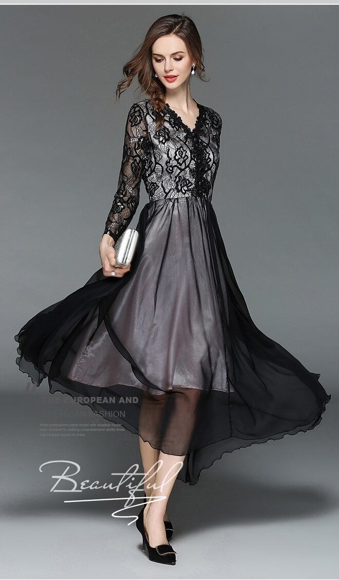 シースルー裾ランダムワンピ-スです。トップスはシャンパンゴールドサテンの下地の上にレースをあしらい、ウエストから下は、白地のサテン地の上に透け感が美しいシフォンを重ねたピュアセクシーなデザインになっています。あえて下地のサテンをみせた印象的な一着。裾の揺れ感がとても美しいです。左脇ファスナー有。裏地あり。