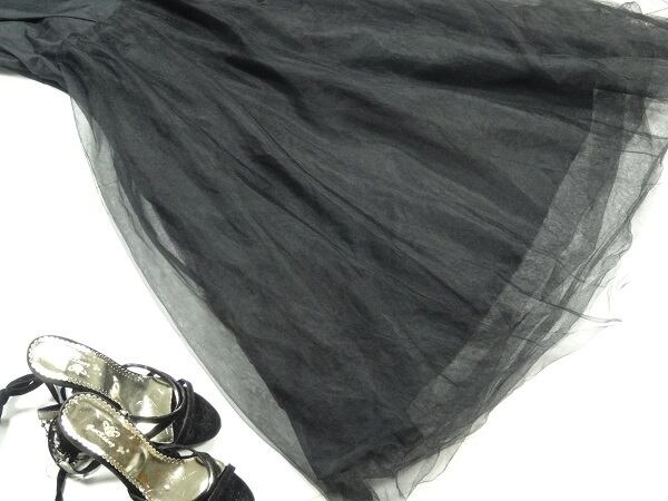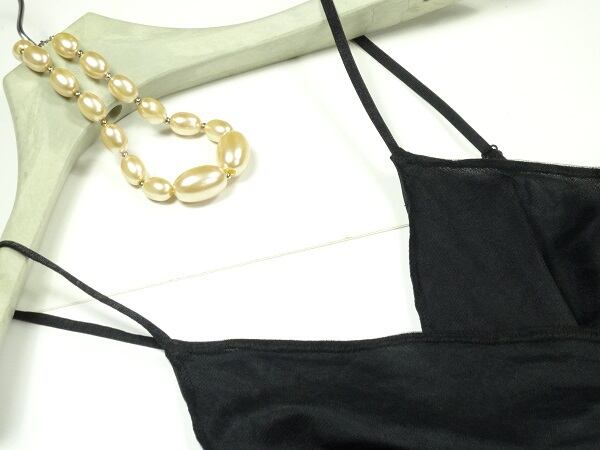チュール地のキャミワンピース。V字カットの胸元がセクシー。ネットチュール地で着心地は抜群。リゾート地はもちろん、パーティやイベントなど、さまざまシーンで活躍してくれる魅力的な一着です。肩ひもはアジャスター付きで長さ調整可能。右脇下ファスナー。裏地なし。