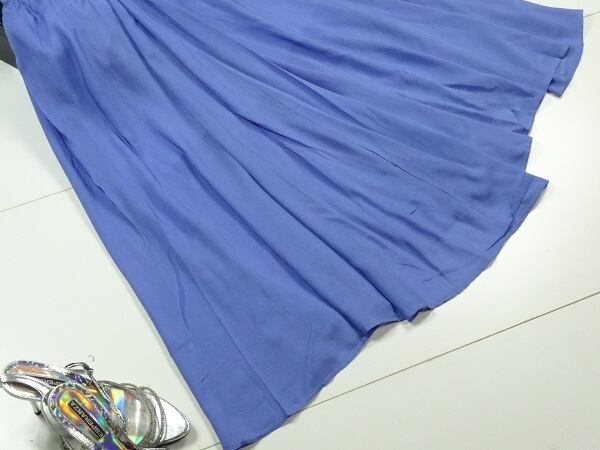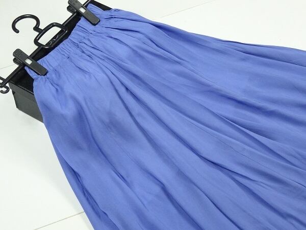 しなやか青のシフォンフレア-スカ-ト。たっぷりとボリュームのあるシフォン地が歩くたびにふんわりと揺れる魅力的なシルエット。リゾートコーデにも最適です!ウエストゴム仕様で伸縮性あり。裏地付。ファスナーなし。