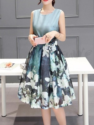 大きな花模様がプリントされたシックなワンピース。全体的に光沢感があり品の良いセクシー感をかもしだしています。ウエストを共布のベルトリボンでキュッと絞るデザイン。シックでやさしくエレガントな一着です。背中ファスナー有。裏地有。