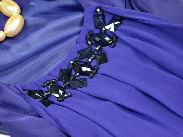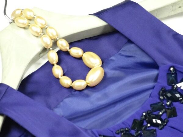 ビジュー飾りフィッシュテールのワンピース。スクエアカットの胸元にはタックを重ね、襟元にはビジュ-飾りをあしらいました。たっぷりと贅沢に生地を使い、後ろが長いフィッシュテールのラインが動きのある軽やかな印象を与えてくれます。柔らかく、しなやかな品の良いデザインです。裏地有。左脇ファスナ-。