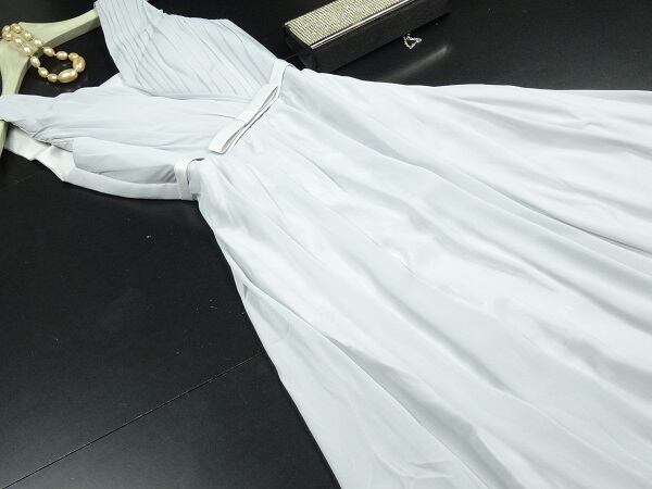 胸元プリ-ツパ-ティ-ロングドレスです。トップス部分のプリ-ツが優しさと女性らしさを表現してくれています。全体的に優しい仕上がりになっています。パーティやイベント、結婚式など、様々なシーンで、気品のある印象を与えてくれる一枚です。背中網掛け。背中腰より下ファスナ-有。胸パット付。