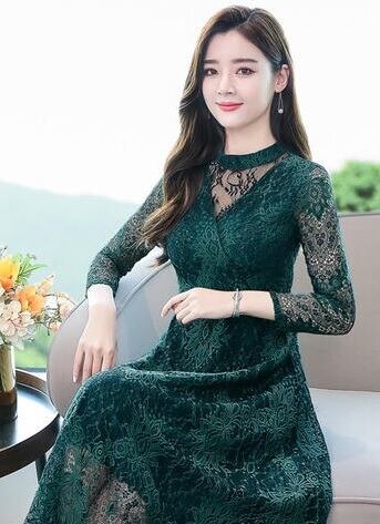 総レ-スフォーマルワンピ-スです。スリムに見えるデザインで大人の女性を醸し出してくれるエレガントな一着です。裏地あり。背中ファスナ-有。