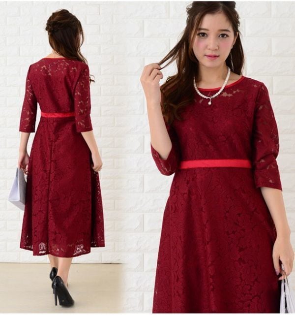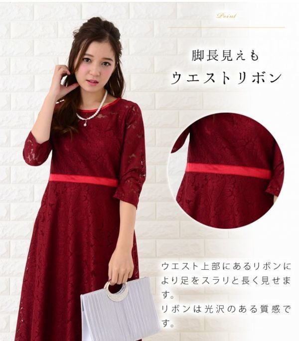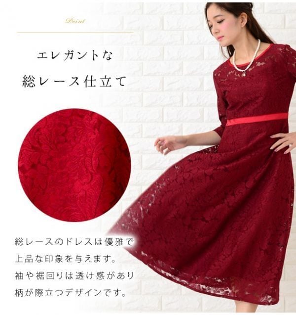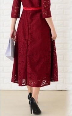 総レ-スフォーマルワンピ-スです。スリムに見えるデザインで大人の女性を醸し出してくれるエレガントな一着です。裏地あり。右サイドファスナ-有。