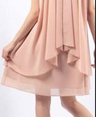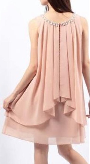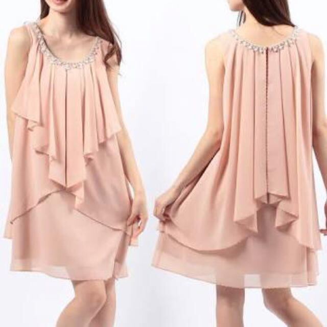 胸元にビジューがあしらわれたフレアワンピース。生地をたっぷりと使用し、ボリューム感のあるシルエットが綺麗で胸元のビジューが華やかさを演出しています。後襟ボタン一つ留め。ボタンから下に10cmほどのスリットが入っていますので着脱がしやすいデザイン。ファスナーなし。裏地付。