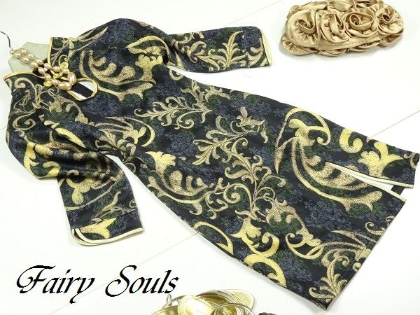 ■サイズ M(9号) バスト:約84cm ウエスト:約68cm 着丈:約85cm 袖丈:約35cm 肩幅:約42cm 右前スリット:約18cm