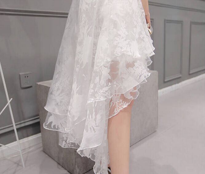 花模様のオーガンジ-マキシ丈のワンピース。薄い透け感がやわらかな印象を与えてくれています。大きなラウンドネックにノースリーブも全体の中でバランスが良く、ピュアでフェアリーなデザインになっています。煌めく太陽の光の中でも、また新緑の爽やかな風の中でも、着る人を美しく魅せてくれる一着です。前と後ろで丈の長さが違います後ろが長いです。裏地有り。右サイドファスナ-有。