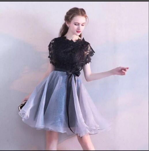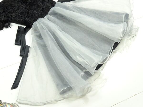 花柄レ-スフレア-ワンピ-スです。トップス部分はサテンの黒地に花の刺繍をあしらっています。ウエストから裾までは黒のサテン生地の上に柔らかなオーガンジーを重ね、ピュアでフェアリーな印象に。パーティやイベント、結婚式など、様々なシーンで活躍してくれる一枚です。ウエスト布リボンベルト付き。裏地なし。背中ファスナ-。胸パット有。