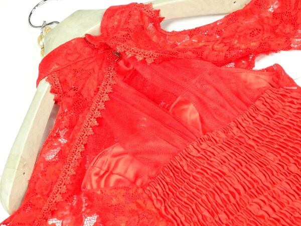 レ-ス重ねパーティ-ロングドレスです。美しいAラインのシルエットで総レ-ス仕様が優しい印象を与えています。背中はシャ-リングになっています。パーティやライブ、イベント、結婚式など、どんなシーンでも活躍してくれる一着です。右サイドファスナ-あり。胸パット付き。