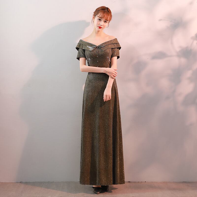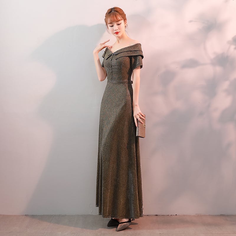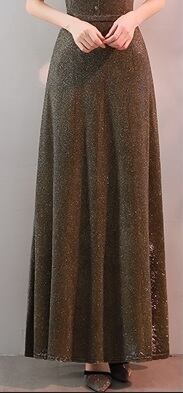 全体にラメが散りばめられたロングドレスです。光の当たり具合で輝く光沢が高級感を醸しだしてくれてます。パーティやライブ、イベント、結婚式など、どんなシーンでも活躍してくれる一着です。左サイドファスナー有。裏地有。