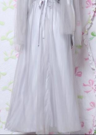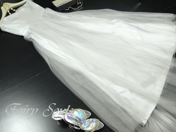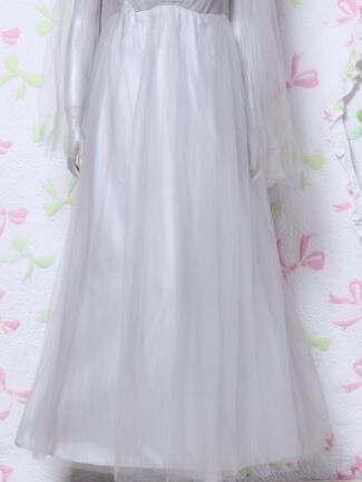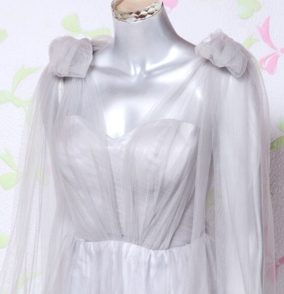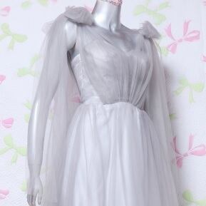 ロングパ-ティ-チュールのドレス。ベアタイプに、ウエストからのびたチュールを首元にあげてそれぞれ両肩で結ぶとまた違った印象になります。パーティやイベント、結婚式など、様々なシーンで、気品のある印象を与えてくれる一枚です。裏地有。背中結び紐有。背中腰から下ファスナ-有。胸パット付き。