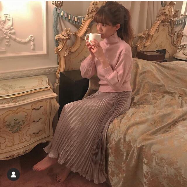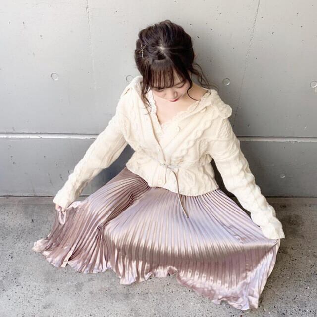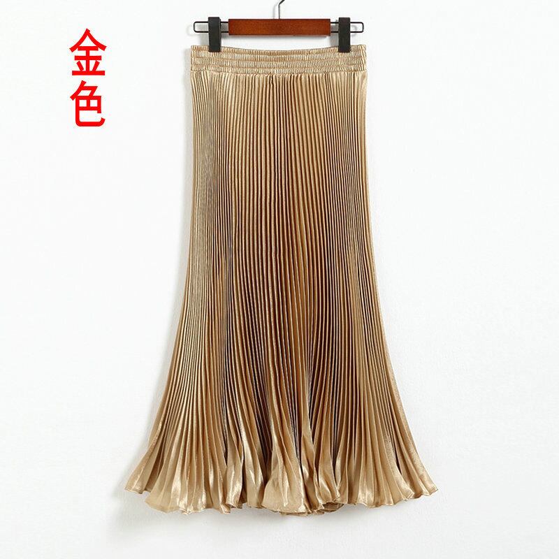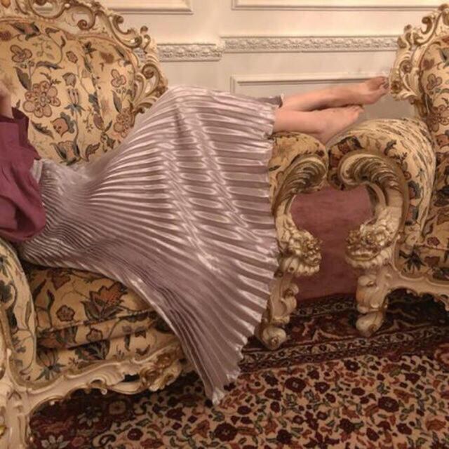 光沢メタリックブラウンゴ-ルドロングプリ-ツスカ-トです。しわになりにくく動くたびに揺れるエレガントなプリ-ツスカ-トです。ファスナ-なし(ウエストゴム仕様)。裏地なし。