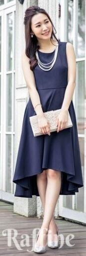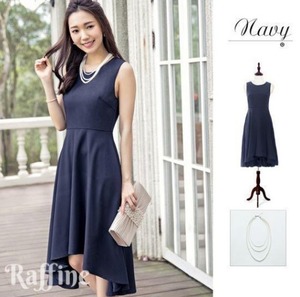 ネイビーのフィッシュテールワンピ-ス。生地はチノパンに代表されるチノクロスに似たしっかりとしたものを使用していますが、フィッシュテールとノースリーブが女性らしさをプラスし、しっかりしているけれどフェミニンという両方の印象をもったデザインになっています。背中ファスナーあり。裏地付き。