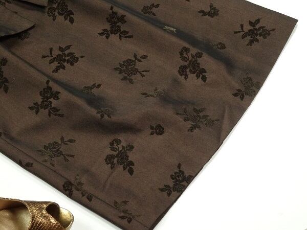 光沢フラワ-型押素材のジャケットとワンピースのセット。ワンピースは全体にフラワ-型押が施されていてすっきりとしたライン。ジャケットはシックな装い。フォーマルのシーンにぴったりのデザインになっています。シルエットも美しく、ワンランク上の大人の装いを演出してくれます。ワンピースは背中ファスナー有・後ろ裾14cmのスリット有。裏地あり。コサ-ジュ付き。