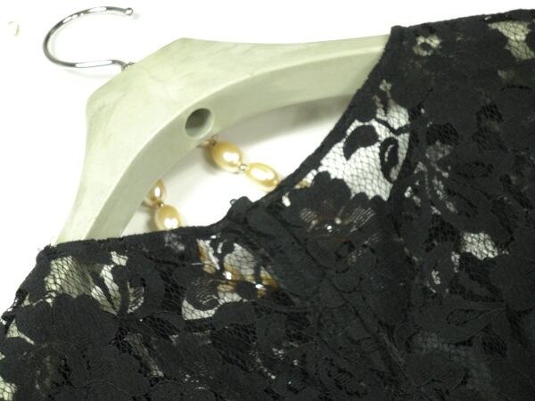 総レース膝丈ワンピ-ス。落ち着いた黒のレースが品良くエレガントさが際立ちとても美しく高級感を醸しだしてくれます。ちょっとおしゃれな普段着として、またフォーマルなシーンでも活躍してくれる一着です。裏地有。背中ファスナー有。