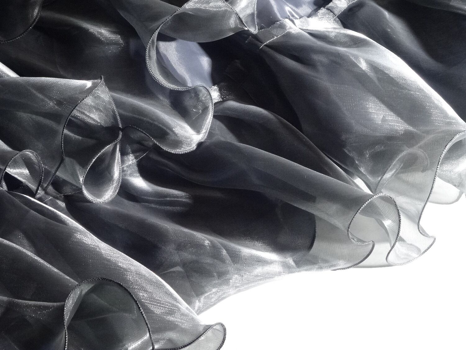 前面段フリル、両サイド胸元から裾にかけドレ-プのとても綺麗で歩く度に揺れて優雅bなロングドレスです。とても楽な着心地で着ていてとても軽いドレスです。いろいろな場面で人目を引くでしょう。背中ファスナー有。背中ヒモ調整可。裏地あり。