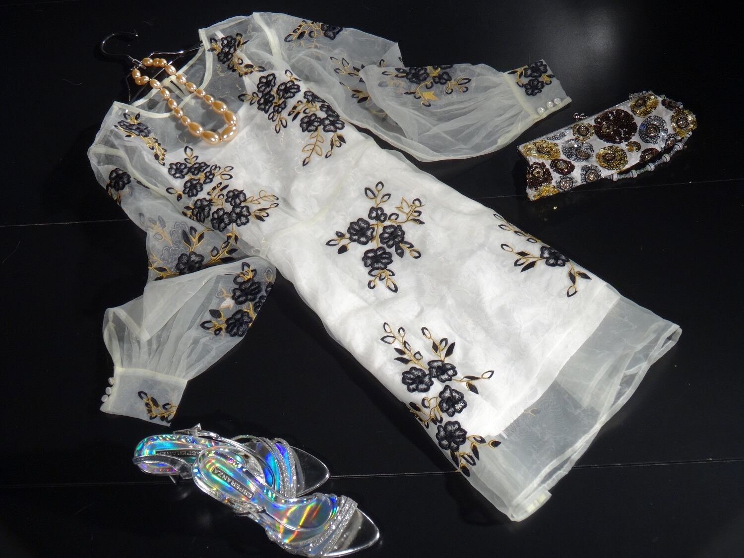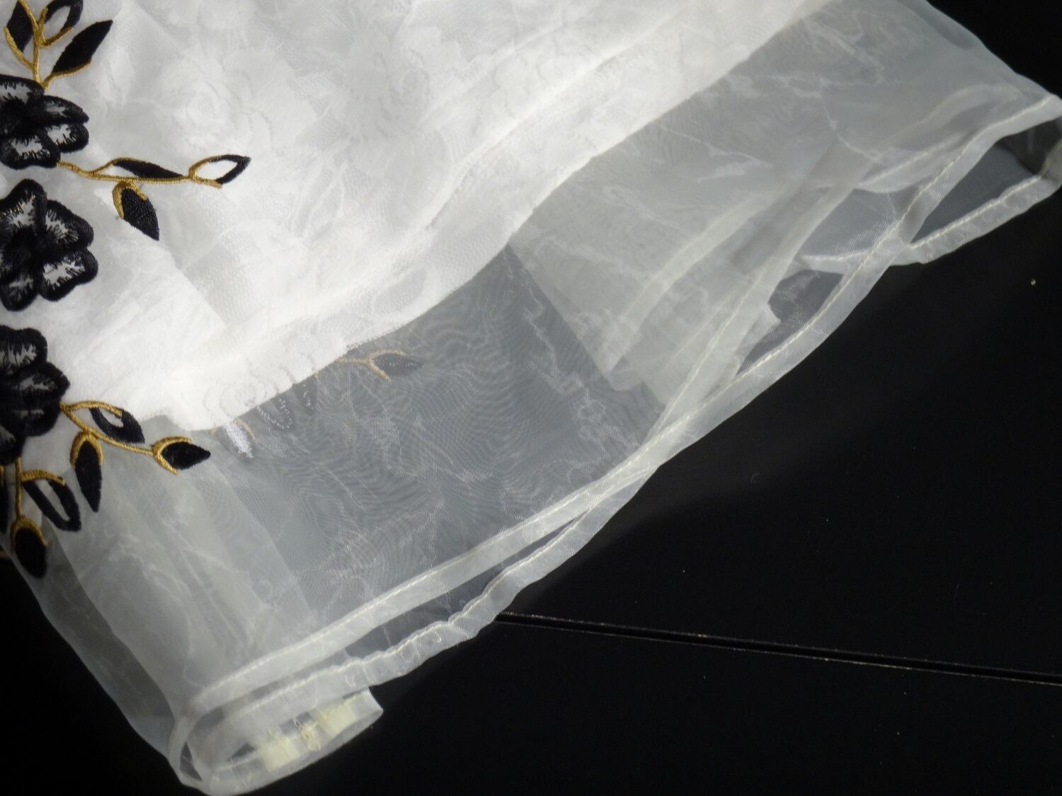 ワンピ-ス全体が透明感があるのでとてもセクシ-です。また光により輝くので様々な表情を表現してくれます。分量感と自然な透け感がとても綺麗で華やぎ、幸せな気分にさせてくれます。気品・存在感・上質をお求めの方にお薦めです。裏地有り。