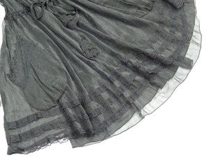 ふんわりとしたAラインに、シースルーな袖のデザインがアクセントを加えています。インナードレスにはかわいいフリルがあしらわれ、ガーリーでフェミニンな一着です。インナードレス付。裏地あり。