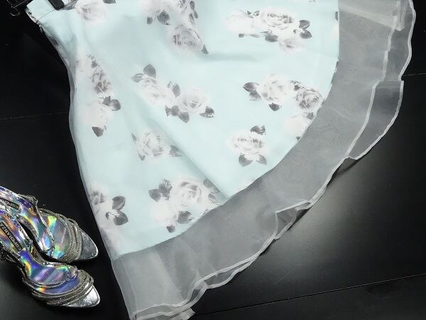 シルエットがとても可愛くて花柄が上品なデザインの可愛い素敵なスカ-トです。透明感を感じる清楚な生地は、光が当たるとナチュラルな光沢感が感じられお姫様のようです。オ-ガンジ-なので綺麗なフレア-ラインをメイクしています。裏地付。サイドファスナ-有。