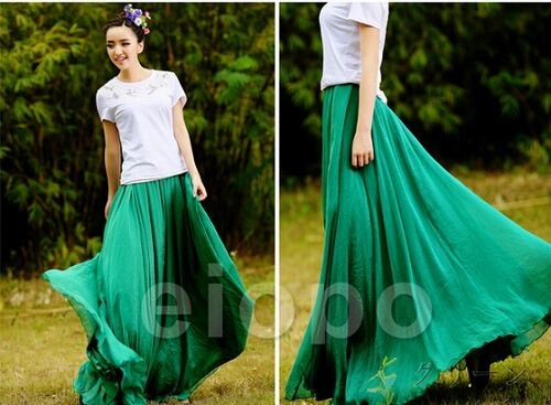 シンプルなシフォンのロングスカ-トです。歩く度にふんわりと揺れる裾が視線を集めます。!リゾ-トコ-デに最適!裏地付。