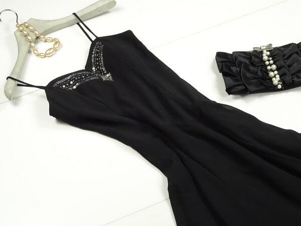 あたりのビジュ-がとても美しいエレガントなシフォンフレア-ロングワンピ-スです。デザイン性のあるスタイルが魅力的。裏地あり。左サイドファスナ-有。