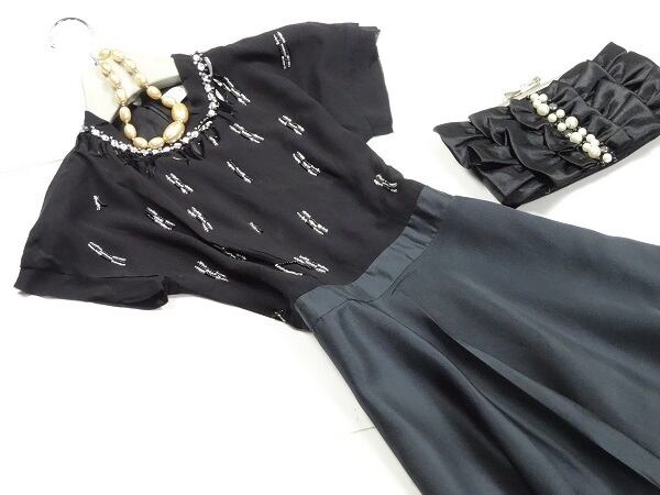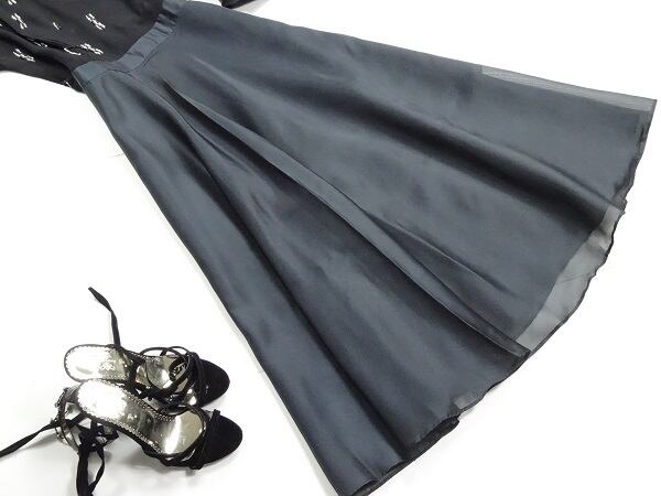 首回りのスパンコ-ル&ビ-ズや正面のビ-ズが輝きオーガンジ-素材切替ロングワンピ-スです。トップス部分は柔らかい人工シルク素材、スカ-ト部分はオ-ガンジ-素材が使用されています。裏地付。バックファスナ-有。