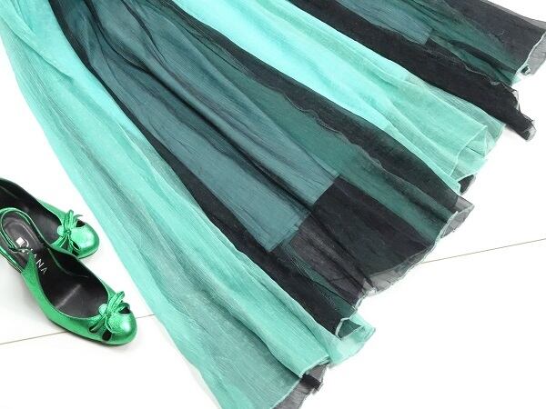 シンプルなシフォンのロングスカ-トです。歩く度にふんわりと揺れる裾が視線を集めます。!リゾ-トコ-デに最適!裏地付。