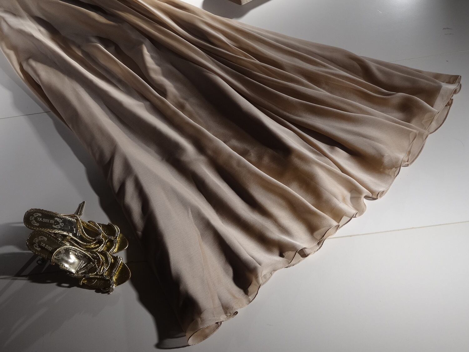 フランス発のプロニプシアのエンパイアロングドレスです。フランス色モルドレカラ-(ピンクベ-ジュ)でバストの下で切替になっていてスレンダ-でシンプルなデザインです。胸元のプリ-ツがポイントになります。発表会や演奏会や舞台衣装にお薦めです。裏地有。