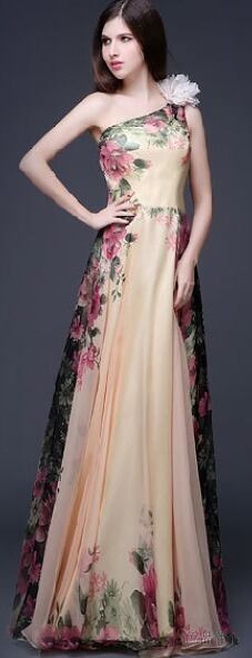 天使のようなとても見栄えのする豪華なプリントシフォンロングドレスです。スカ-ト部分はたっぷりと生地を使い大変ボリュ-ム感のある女性らしい素晴らしいドレスワンピ-スです。軽やかでしなやかな生地で裾が歩くたびにひらひらと揺れ、足元を美しく見せてくれます。裏地付。肩コサ-ジュ付き。右ファスナ-有。