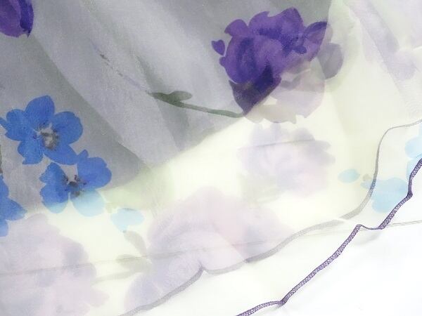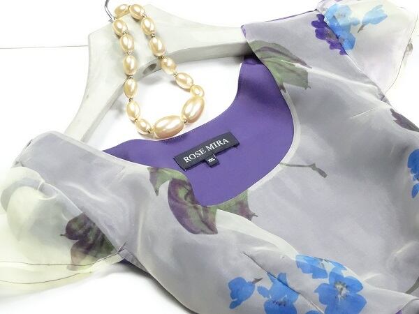きれいなパ-プルでふんわりやわらか素材。腰紐がついていてウエスト調整出来るから自分でくびれを作れます。たいへん綺麗な色で女性度UP間違いありません。ファスナ-脇下あり。裏地有。