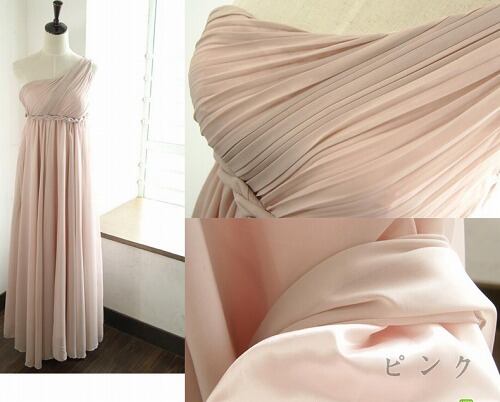 細やかなプリーツがトップスに施され、ウエストの三つ編みで絞られた生地はスカートの裾に向けてゆったりと広がる、美しいシルエットのマキシ丈ドレスワンピースです。しなやかで柔らかなピンクが、着る人の品の良さと可愛らしさを表現してくれています。左脇ファスナー。裏地あり。