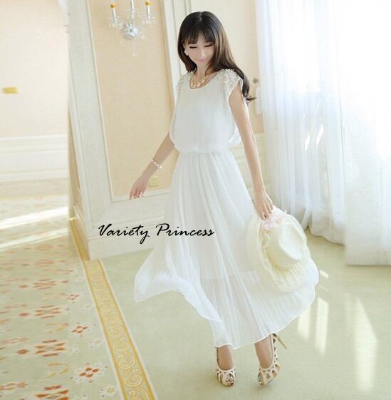 綺麗なプリ-ツのマキシ丈ワンピースです。袖にあしなわれたビジュ-がとてもオシャレで裾に向けて広がるプリ-ツがとても女性らしい一着です。裏地有。ファスナ-無し(かぶるタイプ)