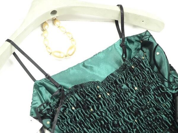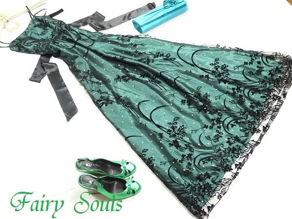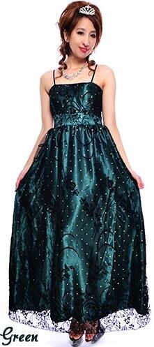 上質な光沢サテンに柔らかな黒メッシュチュ-ルを使用した女子力UPのロングドレスです。全体にゴールド色のビジュ-がちりばめられていて輝き豪華になっています。艶やかな色とフラワ-モチ-フもキュ-トで女性度UP!