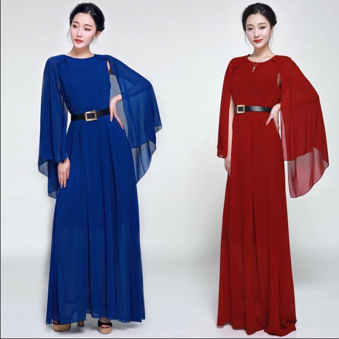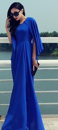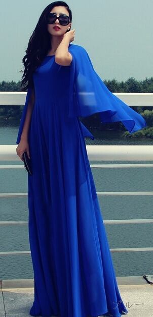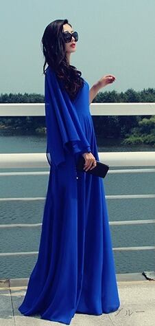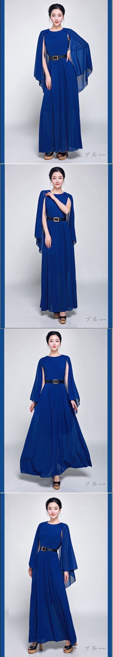 しなやかでやわらかなシフォン生地がたっぷりつかわれたロング丈のワンピース。ノースリーブの袖には、肩からケープのようにふんわりと生地がかぶさり、二の腕が気にならず、また豪華で気品のあるテイストに仕上がっています。シンプルなフォルムをウエストのベルトがキュッとひきしめています。裏地あり。