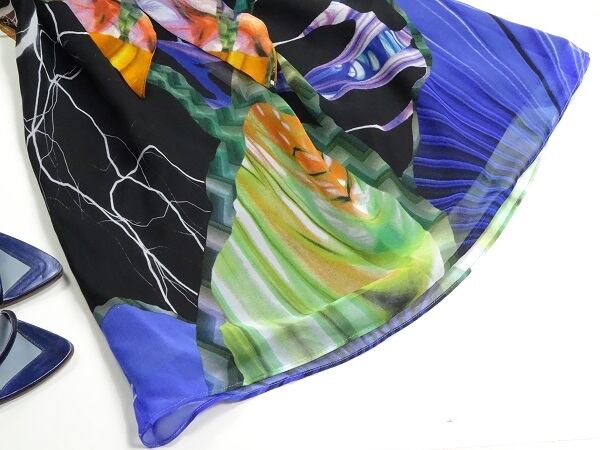 ゆったりシフォン生地を使用したフラワープリントのワンピ-スです。マリ-ゴ-ルドの情熱的なカラ-が印象的。共布のウエストベルトで全体にアクセントを。着心地もとても良くとっても可愛いです。裏地あり。