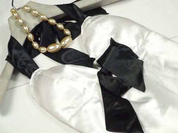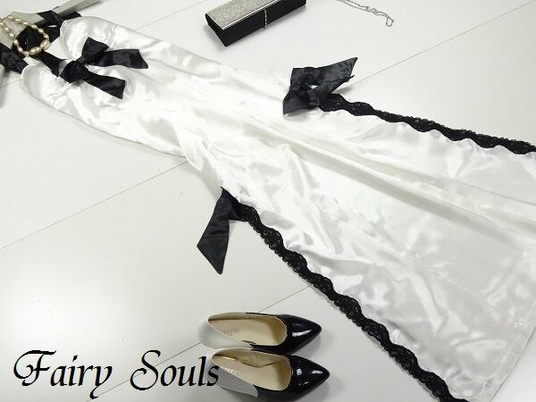 とても綺麗でSEXYなデザインのワンピ-スです。胸元と両サイドのリボンがワンポイントで裾は両サイドスリットで脚を魅せるSEXYデザインです。裏地なし。後ファスナ-有。胸パット有。