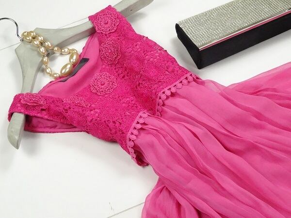 上品かつ優雅女性らしいイメ-ジを与えてくれる透かし彫り花柄プリ-ツワンピ-スです。襟の周りに立体的な綺麗な花の透かし彫り刺繍レ-スと裾にかけてフレアに変わるゆるめプリ-ツのバランスが柔らかく身体を包みこみシフォンの着心地の良さを堪能できます。フェミニンスタイルをお楽しみ下さい。裏地付。