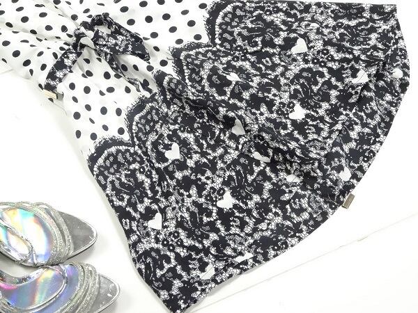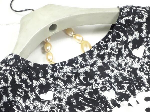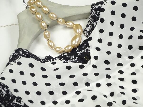 非常に薄く軽い柔らかな人工シルク素材を使用したドット&レ-ス柄プリントチュニックワンピ-スです。プルオ-バ-タイプの大きめAラインシルエットで袖にはロ-ルアップ用のボタンと紐が、ウエストには絞り紐入りでとても便利に着こなせます。裏地なし。ウエスト絞りひも有。ファスナ-なし。