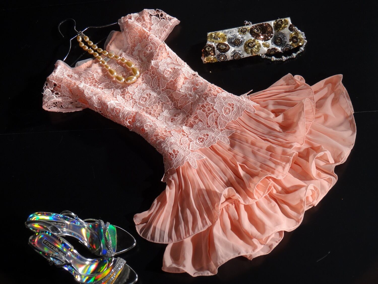 ピンクの鮮やかなシフォンスカ-トが涼しげです。今年大人気の花柄刺繍とプリ-ツの組み合わせが可愛いです。結婚式やパ-ティ-にもお薦めの商品です。裏地付。