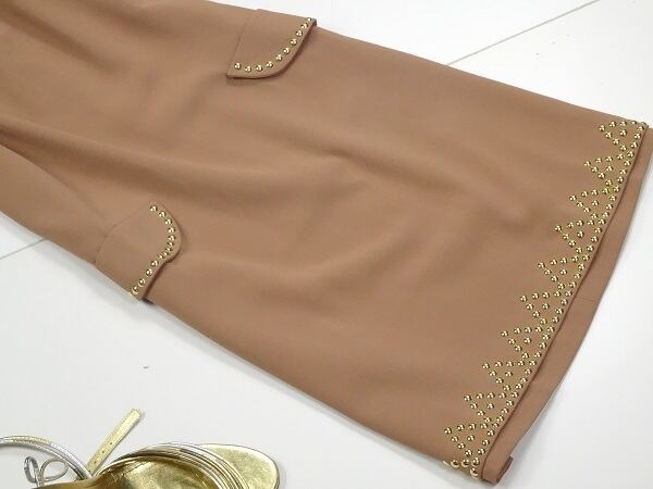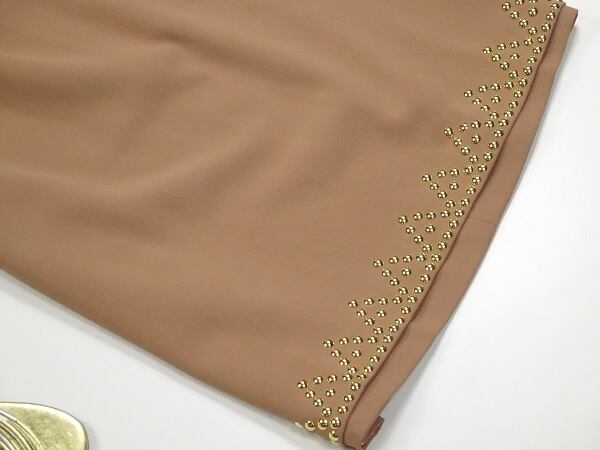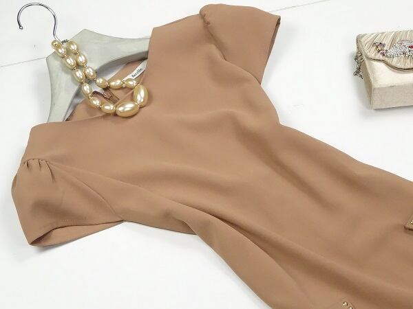 綺麗で高級感のあるデザインのダズリンワンピ-スです。ゴールドスタッジ使いがとてもオシャレでパフ袖もとても可愛いです。後ファスナ-有。裏地なし。